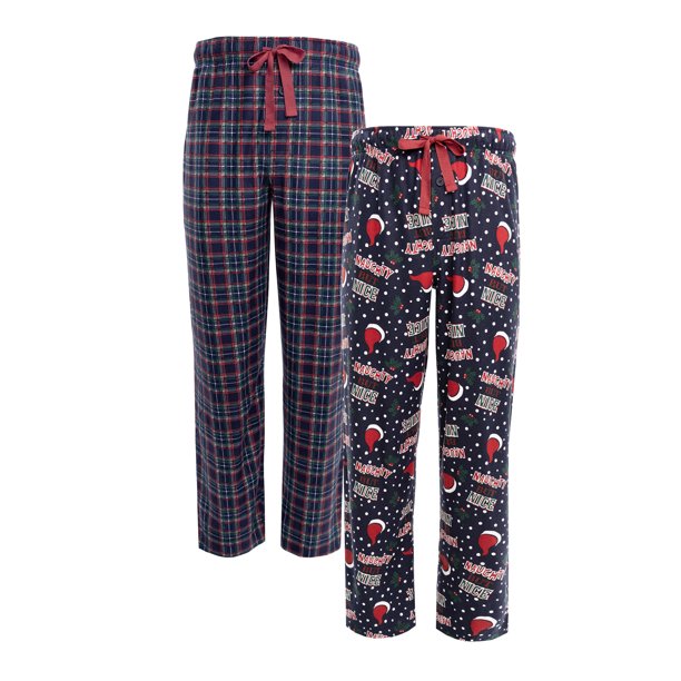 Fruit Of The Loom Men S Holiday And Plaid Print Soft Microfleece Pajama Pant 2 Pack Bundle Walmart Com